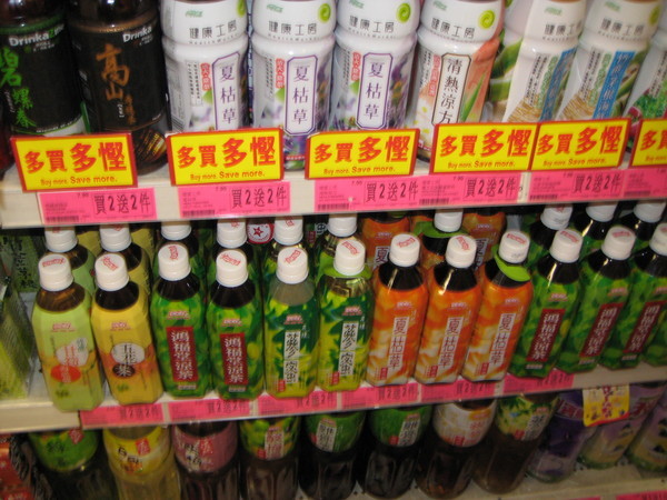 有涼茶、夏枯草、參蜜、五花茶、竹蔗甘筍海底椰等等,